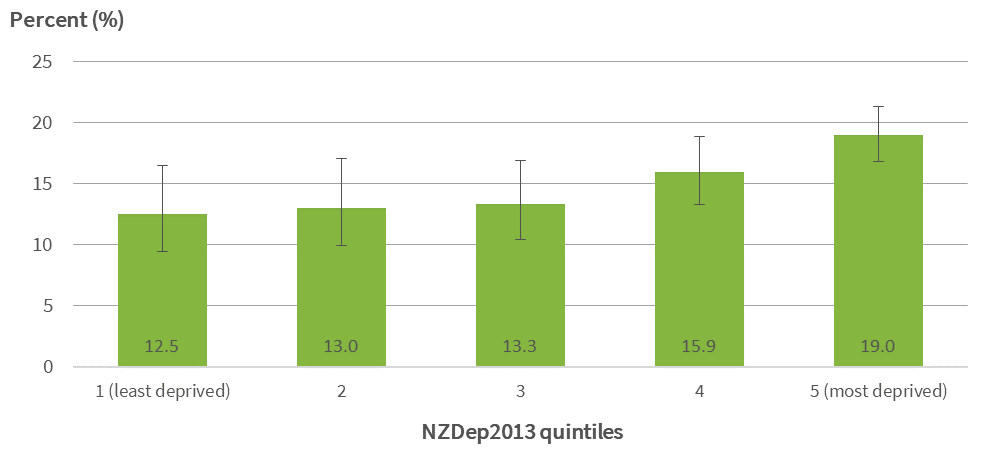 Read more about "Fig 7: Medicated asthma, children aged 2-14 years, by NZDep, 2017/18 (unadjusted prevalence)"... -