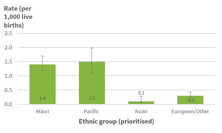 Fig 3: SUDI deaths per 1000 live births, by ethnic group, 2013–17