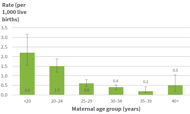 Fig 4: SUDI deaths per 1000 live births, by maternal age, 2013–17