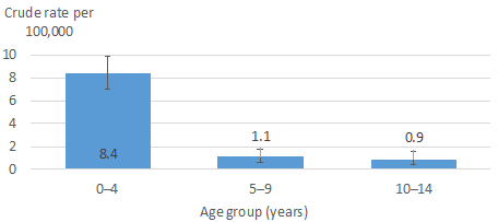Fig 4: Meningococcal disease notification rate, by age group, children aged 0–14 years, 2012–16 (crude rate per 100,000)
