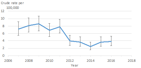 Read more about "Fig 3: Meningococcal disease notification rate, children aged 0–14 years, 2007–2016 (crude rate per 100,000)"... -