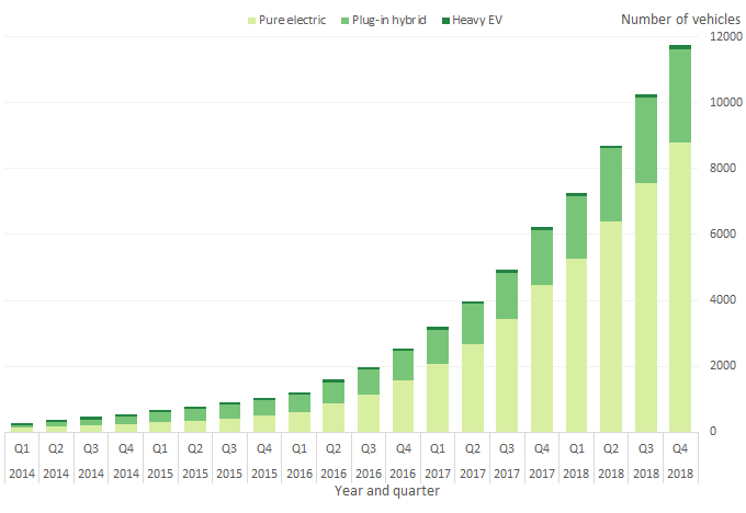 Fig 5: Number of electric vehicles, by vehicle type, 2014-2018