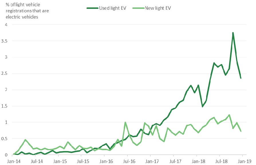 Fig 6: Percentage of light vehicles that are electric vehicles, January 2014 - December 2018