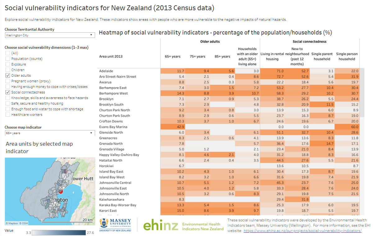 Environmental burden of disease Extreme Climate Index HAPINZ 3.0 NZ Congenital Anomalies Registry PHONZ - Public Health Observatory of NZ